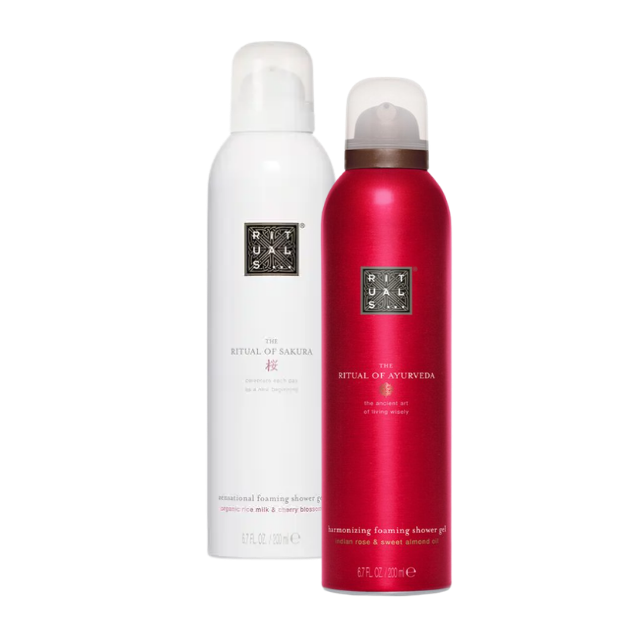 Ontvang twee Rituals Foaming Shower Gels. Geuren worden willekeurig geselecteerd en kunnen niet op voorkeur worden besteld. Bij inlevering van meerdere spaarkaarten zijn specifieke geurvoorkeuren eventueel in overleg mogelijk.